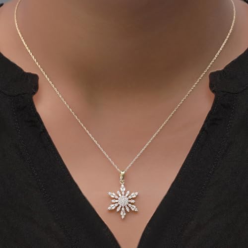 AFFY Snowflake Pendant Necklace for Women, Baguette & Round Cubic Zirconia or Moissanite in 14K Gold Over 925 Sterling Silver, Dainty Winter Charm Jewelry Gift with 18" Rope Chain 5