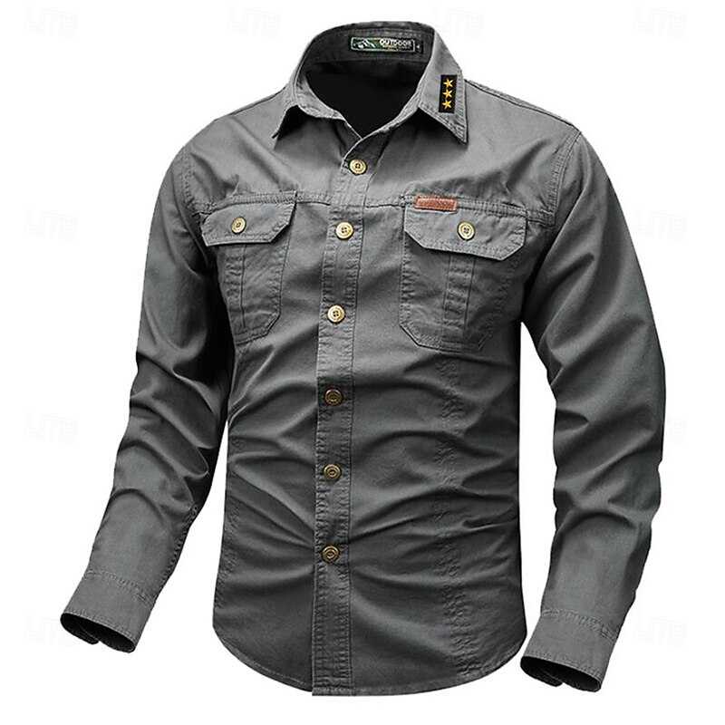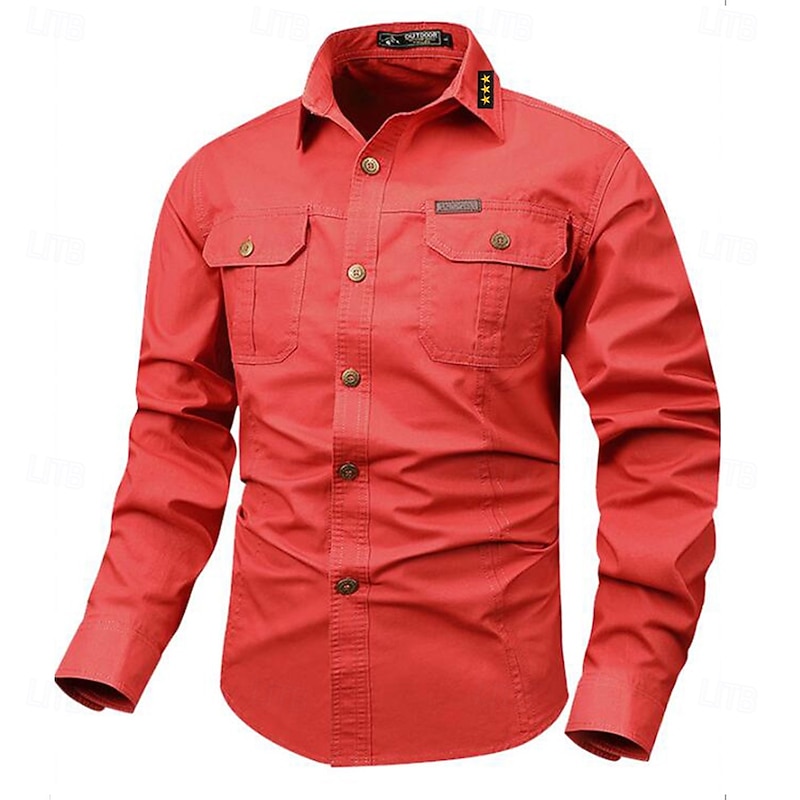 More information about Men's Star Geometric Pattern Work Shirt Western Shirt Cargo Shirt Long Sleeve Vintage Casual Western Style Sports & Outdoor Going out Winter Spring & Fall Turndown Print Black White Army Green Red