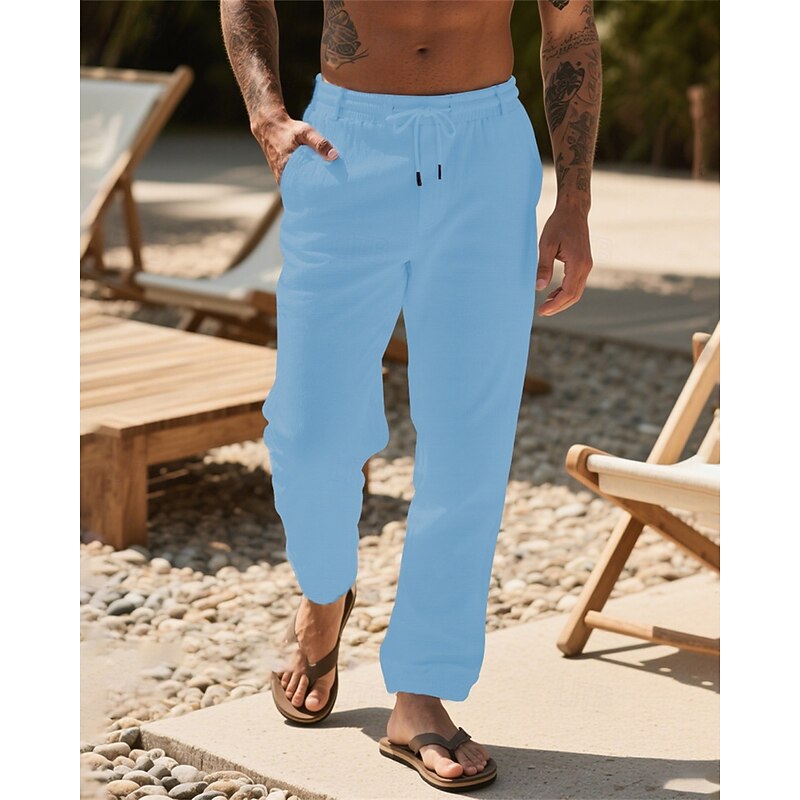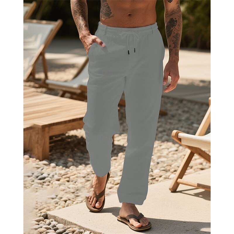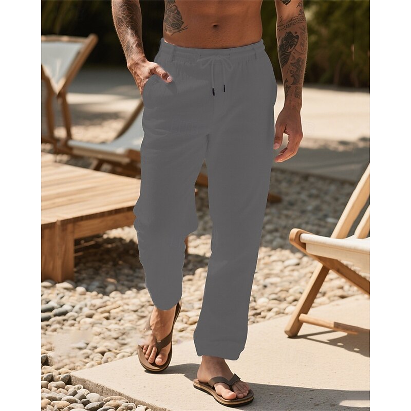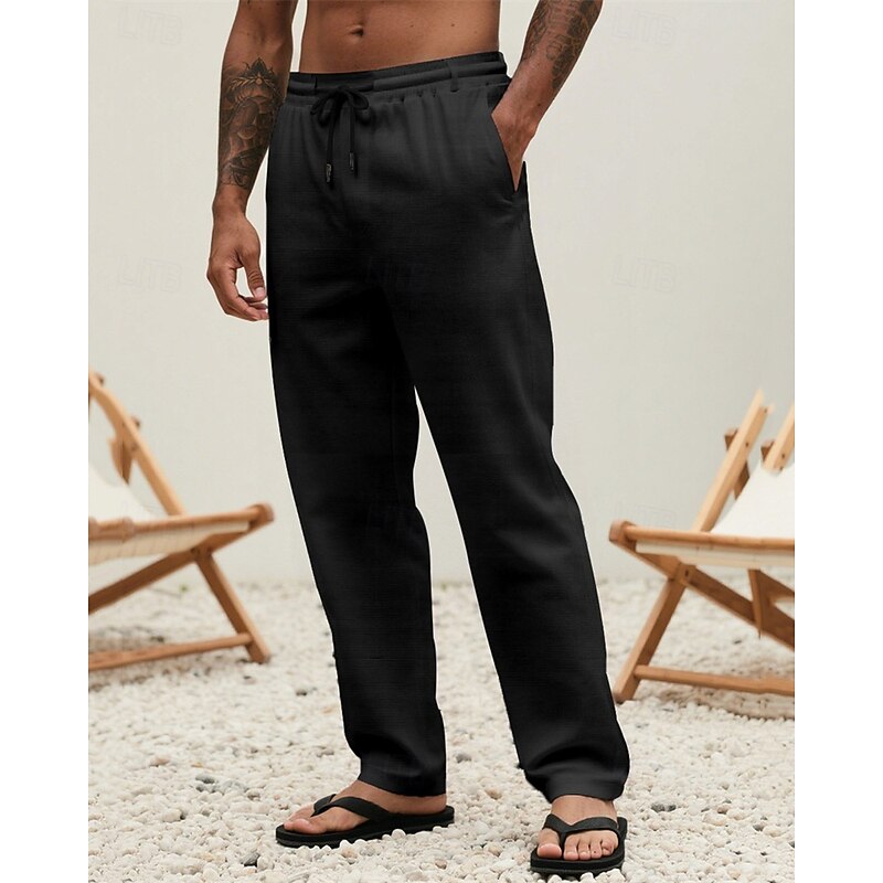 Why Choose Men's Linen Pants Trousers Summer Pants Beach Pants Drawstring Pocket Elastic Waist Plain Comfort Breathable Vacation Daily Holiday Hawaiian Boho Dark Khaki Black?