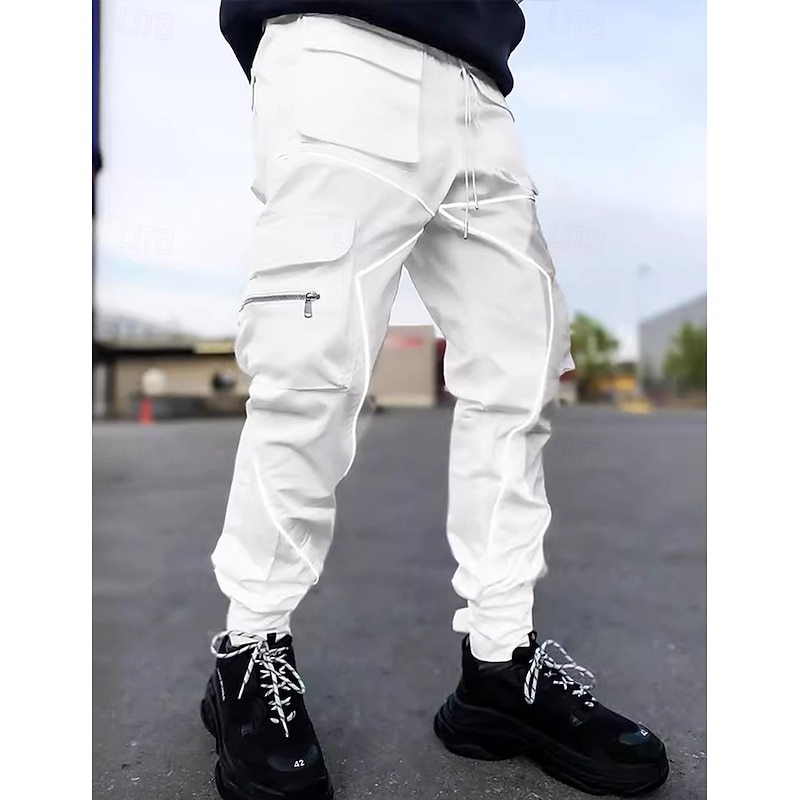 This Men's Cargo Pants Trousers Casual Pants Drawstring Multi Pocket Reflective Strip Plain Comfort silky Full Length Outdoor Daily Going out Fashion Streetwear Black White Micro-elastic combines elegant design with practical functionality. Every detail has been carefully considered to ensure you get the best possible experience. The first-class construction means this product will serve you well for years to come.