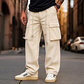 More information about Men's Cargo Pants Cargo Trousers Corduroy Pants Zipper Pocket Buttons Solid Color silky Breathable Full Length Formal Office Work Vacation fashionable Black White Inelastic