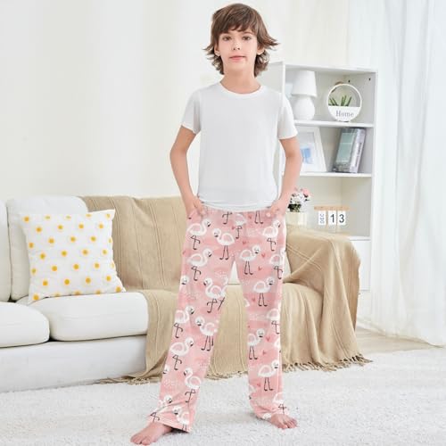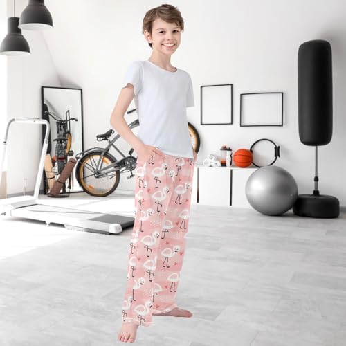 Boy's Pj Pants Pink Heart White Flamingo Lounge Bottoms Elastic Waist Kids Joggers with Pockets Size 6-14 1