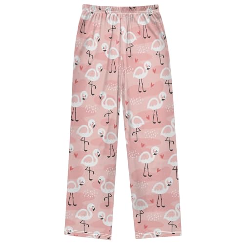 popular ! Boy's Pj Pants Pink Heart White Flamingo Lounge Bottoms Elastic Waist Kids Joggers with Pockets Size 6-14