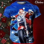 popular ! Christmas Men's Santa Claus 3D T-shirts Graphic Santa Claus Daily Designer Retro Vintage 3D Print Tee Sports Outdoor Holiday Going out Light Blue Black / White Black Short Sleeve Crew Neck Spring