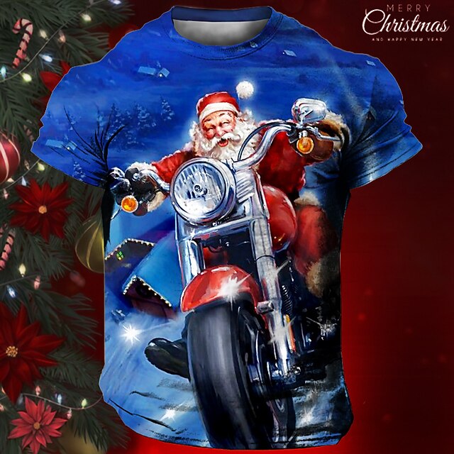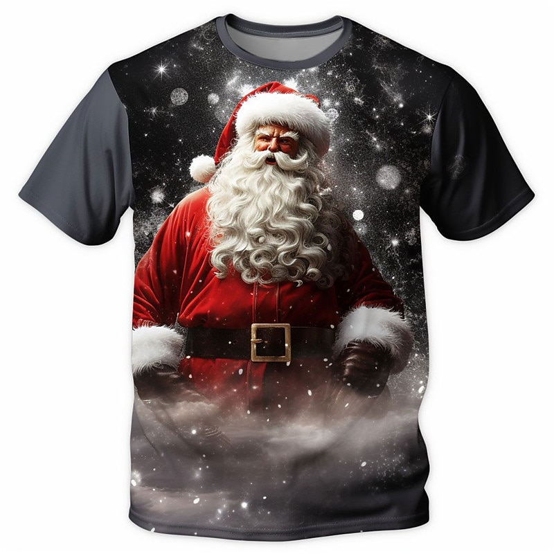 More information about Christmas Men's Santa Claus 3D T-shirts Graphic Santa Claus Daily Designer Retro Vintage 3D Print Tee Sports Outdoor Holiday Going out Light Blue Black / White Black Short Sleeve Crew Neck Spring