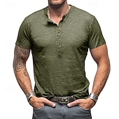 More information about Men's Button T Shirt T Shirt Henley Shirt Tee Short Sleeve Henley Spring & Summer Plain Fashion Designer Basic Vacation Street Going out Almond Black White Top Tee for Men