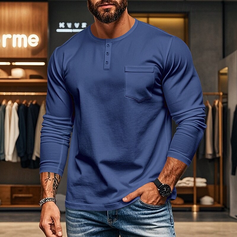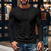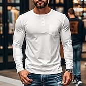 More information about Men's Button T Shirt T Shirt Henley Shirt Tee Long Sleeve Henley Spring & Fall Plain Fashion Designer Basic Pocket Vacation Street Going out Black White Blue Top Tee for Men