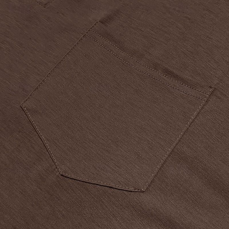 The shirt features a enduring Henley neckline with a three-button placket for a touch of casual sophistication. A practical chest pocket adds both style and utility, enhancing the shirt’s everyday functionality.