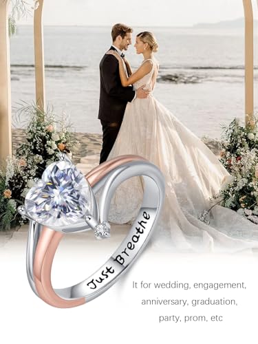 Heart Zircon Ring for Women 925 Sterling Silver Just Breathe Rings Zircon Jewelry Engagement Rings Valentine's Day Gifts 4