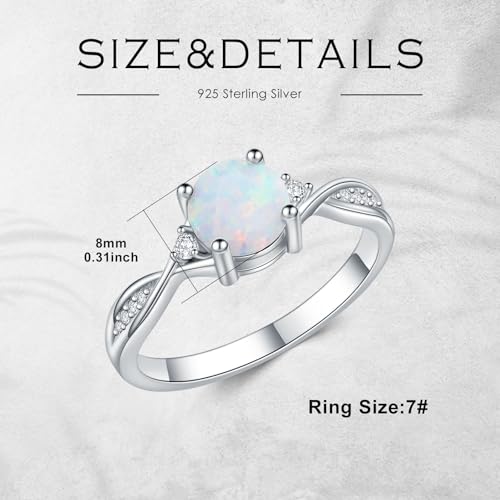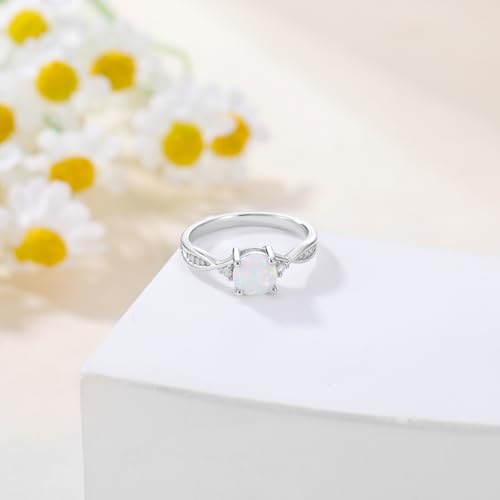 Opals Ring for Women 1 Carat 925 Sterling Silver Round Shape Opal Engagement Ring with Moissanite Promise Ring Valentine's Day Jewelry Gifts for Her,Ring Sizes 4-12 6