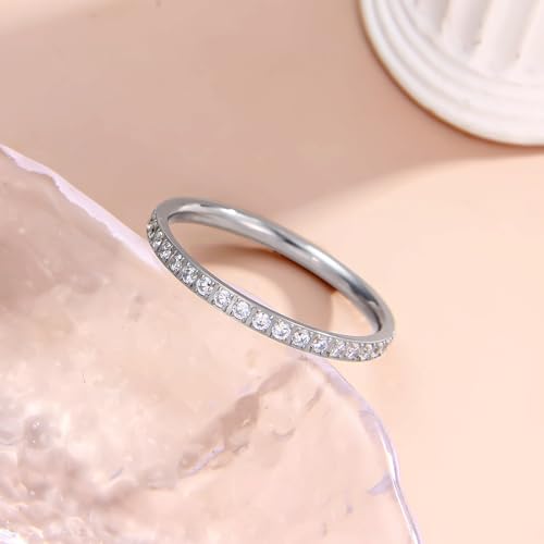 Why Choose Wedding Bands Promise Rings for Women: 18K Gold Plated Stainless Steel CZ Simulated Diamond Eternity Band Stackable Engagement Ring 2mm Thin Jewelry Silver Rose Gold Size 5 6 7 8 9 10?
