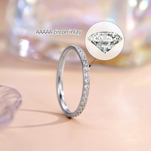 - DESIGN FEATURES: 2mm thin eternity band showcases sparkling cubic zirconia stones in a retro channel setting