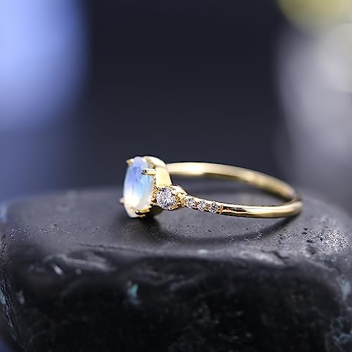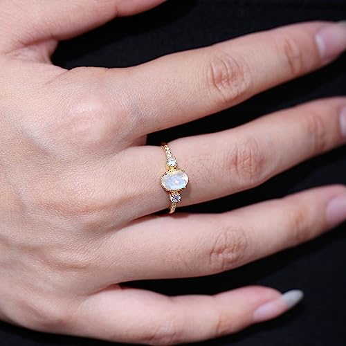 Gem's Beauty Gold Rings for Women 14K Gold/Rose Gold Plated 925 Sterling Silver Natural Moonstone Jewelry Women Wedding Engagement Rings Birthday Gifts for Her (Size5-10)