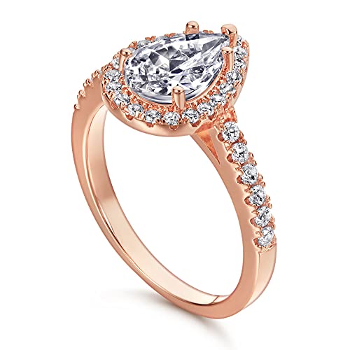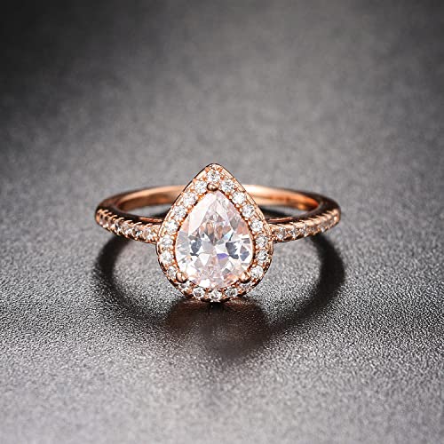 Rose Gold Plated Wedding Band Teardrop Water Drop Shape Cubic Zircon Halo Engagement Proposal Ring,Pear-Shaped Promise Bridal Ring 7