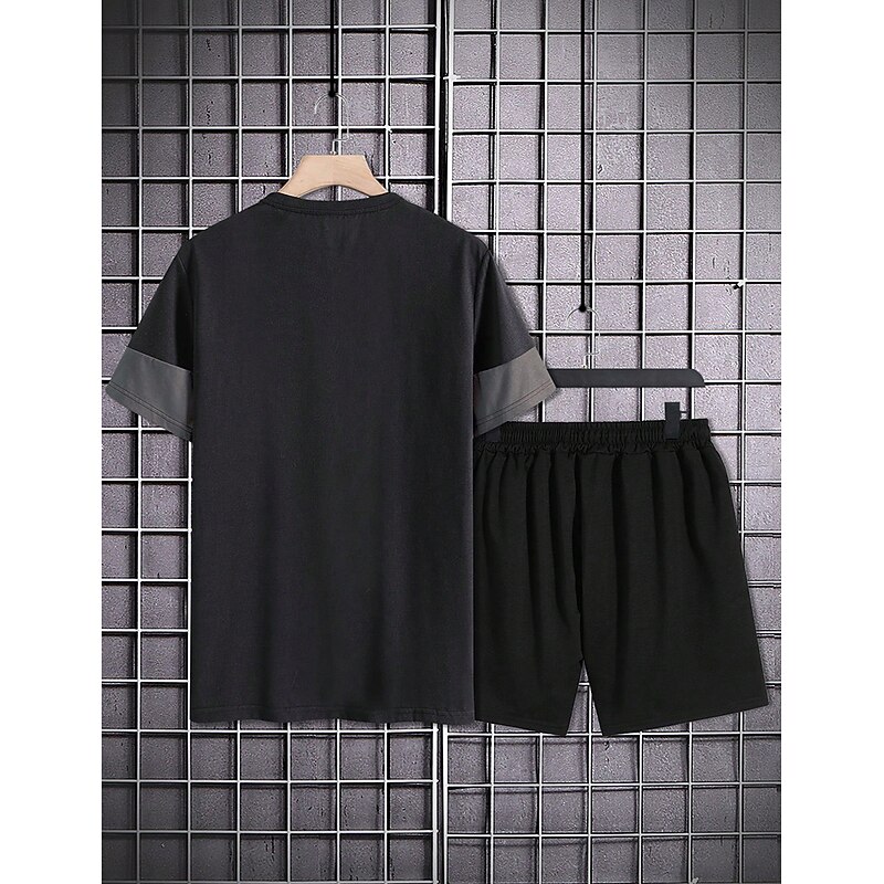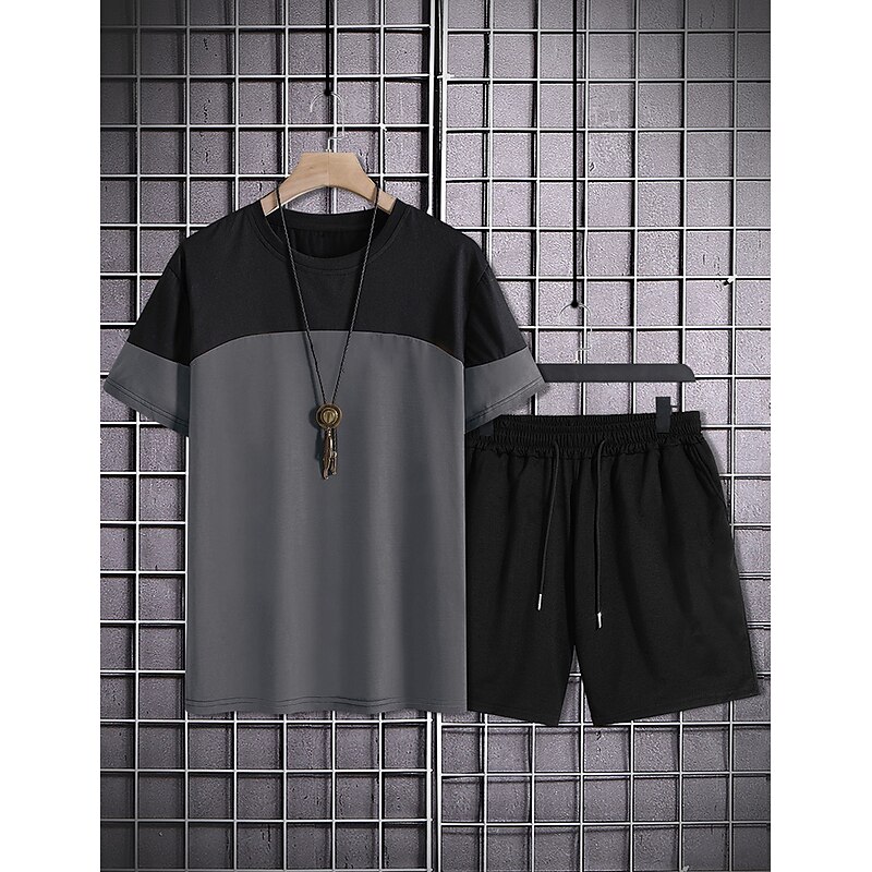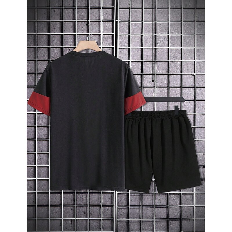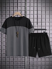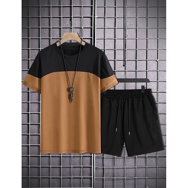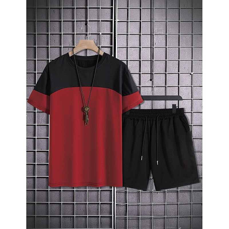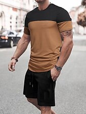 popular ! Men's 2 Pieces Outfits T-Shirt and Drawstring Shorts Set Short Sleeve Crewneck Summer Color Block Fashion Sport Casual 2 Piece Vacation Casual Daily Wear Red Blue khaki Top Tee for Men