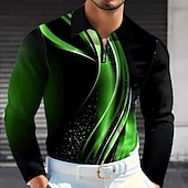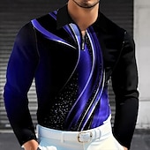 popular ! Men's Geometic Line Polo Long Sleeve Polo Shirts Lapel Business Casual Business Daily Wear 3D Print Buttons Spring Fall Lake blue Blue Green