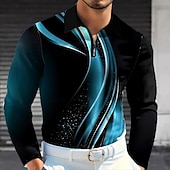 More information about Men's Geometic Line Polo Long Sleeve Polo Shirts Lapel Business Casual Business Daily Wear 3D Print Buttons Spring Fall Lake blue Blue Green