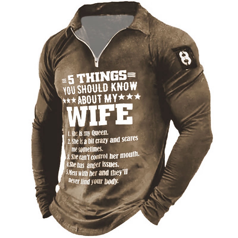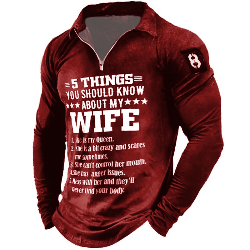 Why Choose Men's Long Sleeve Quarter-Zip Tee, Funny 5 Things You Should Know About My Wife Graphic Shirt, Humorous Family Relationship Gift?