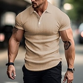 This Men's Knit Polo Sweater Muscle Shirt Casual Holiday Lapel Short Sleeve Fashion Basic Plain Sexy Summer Slim Fit Black White Khaki Knit Polo Sweater combines elegant design with practical functionality. Every detail has been carefully considered to ensure you get the top possible experience. The first-class construction means this product will serve you well for years to come.