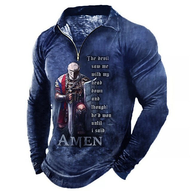 More information about Men's Knights Templar Zip Polo Shirts Golf Shirt Long Sleeve Polo Shirts Collared Shirts Vintage Casual Vacation Wear Festival Wear Party Outfits 3D Print Quarter Zip Polo Black Blue Green