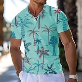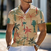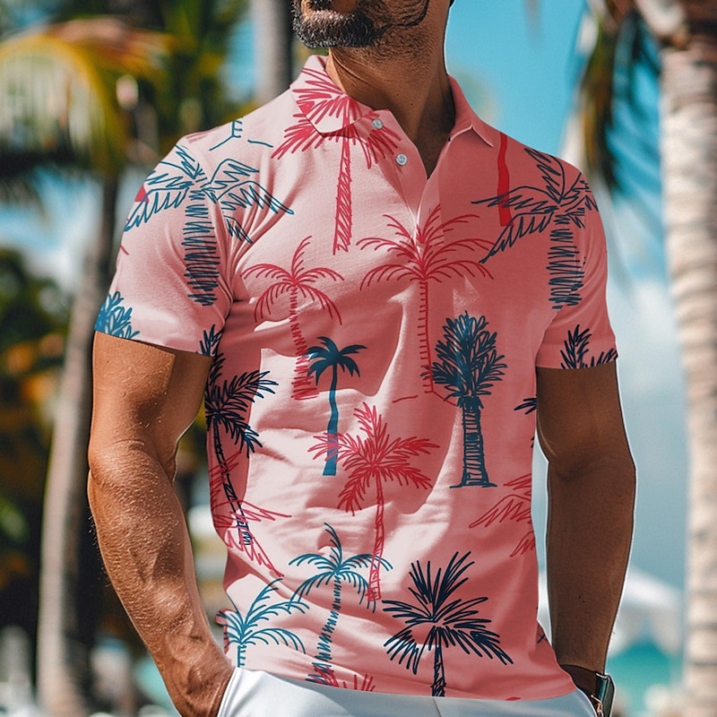 Highlights [Fabric] : Crafted from high-quality polyester, this men's polo shirt promises both comfort and durability. The lightweight and breathable material ensures a cool and pleasant wear, ideal for warm weather outings. [Fit] : The shirt features a slim fit silhouette that accentuates the wearer's form. Its short sleeves and retro polo design offer a versatile look suitable for both relaxed and semi-formal occasions, making it a fashionable choice for the spring and summer seasons. [Design Highlights] : Embrace a tropical vibe with the vibrant 3D palm tree print in shades of blue and red on a bright white background. The standard collared neckline and button-up placket add a touch of classic elegance, while colorful buttons bring a distinctive, playful touch. [Occasions] : Perfect for beach days, tropical vacations, or casual parties, this polo shirt is versatile enough to fit a variety of settings. Whether attending a relaxed gathering or enjoying a sunny day out, this shirt effortlessly complements the occasion. [Size] : Available in a wide range of sizes, including S, M, L, XL, XXL, and 3XL, accommodating a broad range of body shapes and sizes.