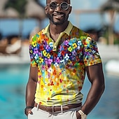 Highlights [Fabric:] Crafted from a breathable and lightweight waffle fabric, this men's polo shirt offers comfort and versatility. The quality fabric is perfect for keeping cool in warmer climates, making it ideal for spring and summer wear. [Fit:] Designed with a tailored fit, this short-sleeve polo shirt provides a current silhouette that flatters various body types. Its casual yet sophisticated style makes it a suitable choice for a range of occasions. [Design Highlights:] The polo features a retro collared neckline with buttons and a striking 3D print. The eye-catching pattern resembles an abstract floral design with a vibrant palette of yellow, purple, red, and blue hues. This bold print adds a splash of color and personality to any outfit. [Occasions:] Perfect for beach wear, vacation trips, tropical outings, or casual parties. Whether you're on holiday or enjoying a casual day out, this polo shirt makes a fashionable statement. [Size Range:] Available in a wide range of sizes from S to XXXL, ensuring a suitable fit for various body shapes and preferences.