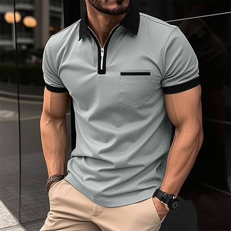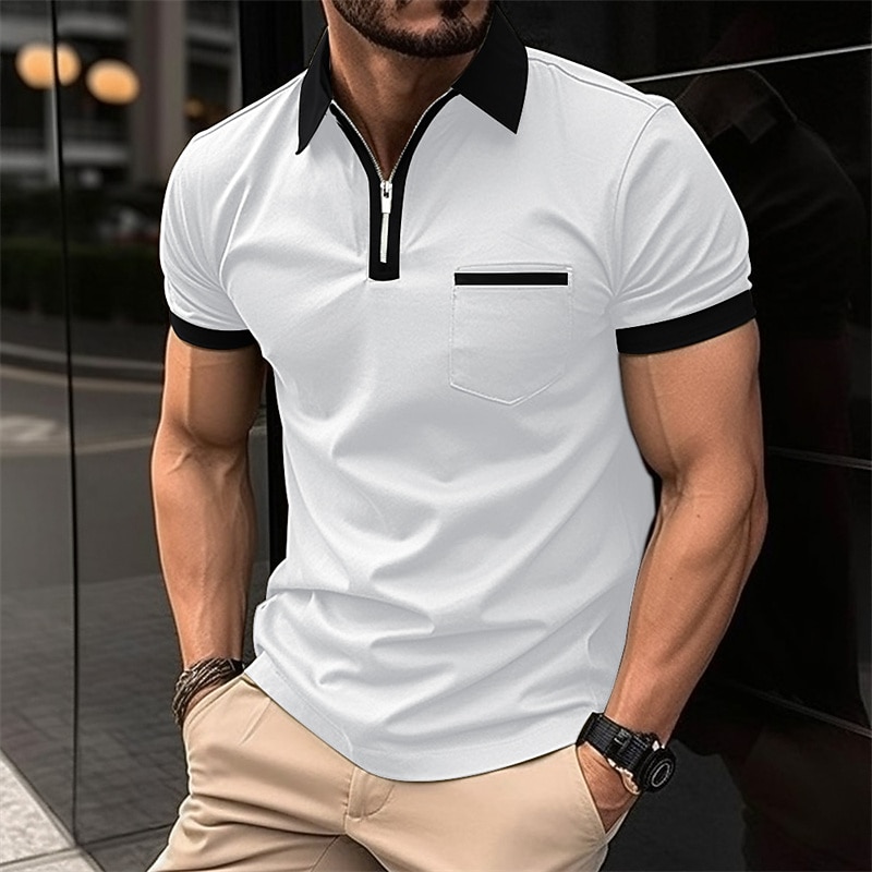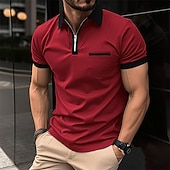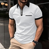 Highlights Men's Polo Shirt Highlights [Fabric] Crafted from premium polyester, this men's polo shirt ensures lasting comfort and breathability, perfect for keeping cool during summer days. Its micro-elastic property provides just the right amount of stretch for ease of movement, making it a go-to choice for any casual or semi-formal occasion. [Fit] The shirt is designed with a regular fit silhouette that offers a comfortable yet tailored look. This versatile fit suits a variety of body types, providing both style and ease for everyday wear. [Design Highlights] Featuring a modern quarter zip design, this shirt offers a one-of-a-kind twist on the classic polo. The contrasting lapel collar and sleeve cuffs elevate its style quotient, adding a sophisticated touch. A functional chest pocket adds practicality without sacrificing aesthetics. [Occasions] Ideal for holidays, casual outings, or laid-back weekends, this polo shirt bridges the gap between fashion and function. Whether dressing up for a relaxed dinner or keeping it casual on a day out, this shirt delivers effortless style. [Size Range] Available in a wide range of sizes—from S to 3XL—covering options for men of different builds, ensuring a perfect fit for everyone. With a selection of colors like Blue, Green, White, Black, Red, Dark Navy, and more, there’s a shade to complement every personal style. Perfect for everyday use. superior materials and excellent craftsmanship ensure long-lasting durability.