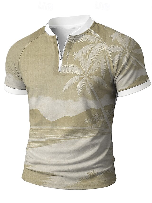 This Men's Palm Tree Zip Polo Short Sleeve Stand Collar Vacation Leisure Athleisure Hawaiian Casual Daily Zipper 3D Print Summer Robin's Egg Blue Light Green Brown combines elegant design with practical functionality. Every detail has been carefully considered to ensure you get the top possible experience. The first-class construction means this product will serve you well for years to come.