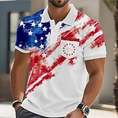 popular ! American Independence Day Men's American US Flag Polo Short Sleeve Polo Shirts Collared Shirts Casual Outdoor Athleisure Daily Wear Pocket 3D Print Summer Light Blue-White