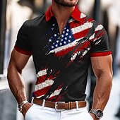 More information about Independence Day Men's American US Flag Zip Polo Short Sleeve Turndown Casual / Sporty Casual Daily Festival 3D Print Graphic Summer Black White Blue