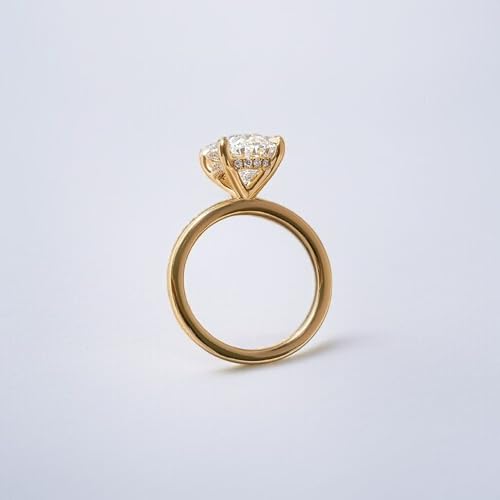 Art Deco 10x7 MM Elongated Oval Cut Moissanite Wedding Ring 10K Solid Yellow Gold Hidden Halo Engagement Ring 2.5 CT Stone Women Anniversary Promise Jewelry Birthday Gift For All Family 5