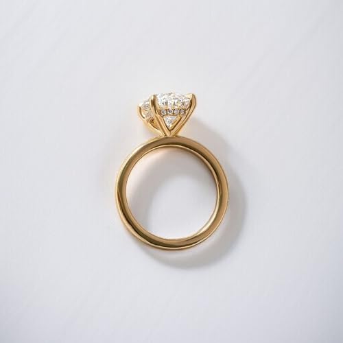 Art Deco 10x7 MM Elongated Oval Cut Moissanite Wedding Ring 10K Solid Yellow Gold Hidden Halo Engagement Ring 2.5 CT Stone Women Anniversary Promise Jewelry Birthday Gift For All Family 6
