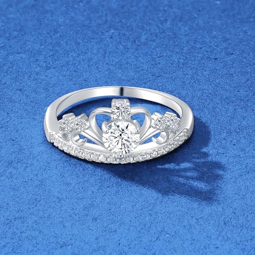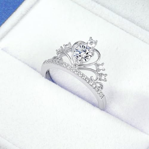 925 Sterling Silver Cubic Zirconia Crown Rings for Women Love Heart Simulated Dimond Eternity Band Rings 18K White Gold Plated S925 Promise Wedding Statement Engagement Rings Gift for Her Size 9 7
