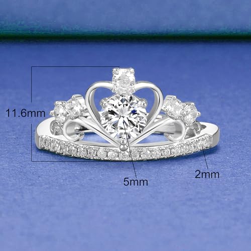 925 Sterling Silver Cubic Zirconia Crown Rings for Women Love Heart Simulated Dimond Eternity Band Rings 18K White Gold Plated S925 Promise Wedding Statement Engagement Rings Gift for Her Size 9 6