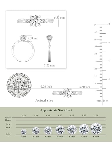 • SPECIFICATIONS - 925 Sterling Silver; Cubic ZirconiaCubic Zirconia Color: White; Clarity: Clean; Creation: Synthetic; Treatment: Not-treated; 1.00 Carat Round Cubic Zirconia Size: 6.40mm to 6.60mm (approx); Product Width: 6.50mm (0.26 inch); Model Number: CZ2058-925-1.00-5