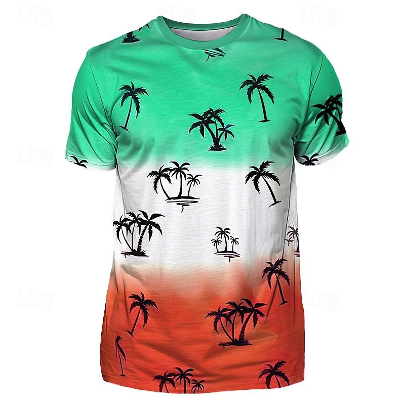 Highlights [Fabric and Composition] Crafted from high-quality polyester, this t-shirt ensures breathability and comfort, making it ideal for spring and summer wear. The micro-elastic quality provides a comfortable fit while allowing ease of movement for various activities. [Style and Fit] The t-shirt features a regular fit that suits a range of body types, offering a relaxed and comfortable wear. Its crew neck and short sleeve design lend a classic, casual look perfect for everyday wear. [Design Highlights] The shirt boasts a vibrant 3D graphic print featuring a color block pattern with coconut tree motifs. The ombré effect transitions beautifully from blue to orange, evoking a tropical, laid-back vibe. This eye-catching design adds a trendy and modern touch to any ensemble. [Occasions] Perfect for a variety of settings, this t-shirt is suitable for vacation, casual outings, sports, outdoor activities, and holidays. Whether you're heading to the beach, having a relaxed day at home, or participating in outdoor sports, this versatile tee adds charm and style to your look. [Size Range] Available in multiple sizes, including S, M, L, XL, 2XL, and 3XL, ensuring a fit for various body types and preferences.