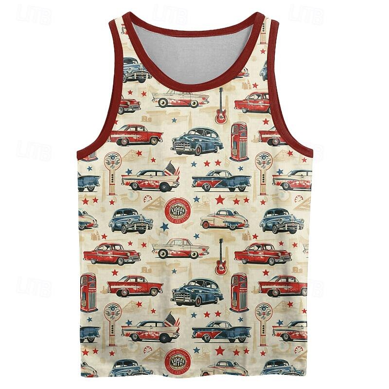 More information about Men's Vehicle T Shirt Vest Top Sleeveless T shirt 3D Print Crew Neck Shirt Vacation Retro Vintage Street Daily Holiday Red Blue Khaki Summer Spring Clothing Apparel S M L XL XXL XXXL