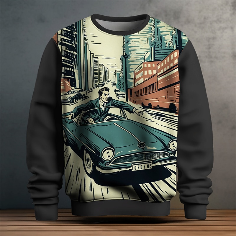 Why Choose Men's Graphic Car Sweatshirts Golf Pullover Sweatshirt Long Sleeve Sweatshirt Crew Neck Fashion Daily Casual 3D Print Vacation Holiday Going out Print Spring & Fall?