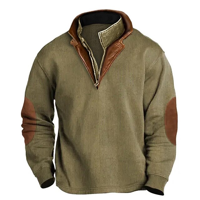 Why Choose Men's Sweatshirt Quarter Zip Sweatshirt Army Green Navy Blue Brown Khaki Half Zip Color Block Patchwork Sports & Outdoor Daily Holiday Corduroy Streetwear Basic Casual Fall & Winter Clothing Apparel?