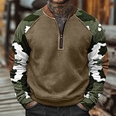 Why Choose Men's Sweatshirt Quarter Zip Sweatshirt Army Green Navy Blue Blue Purple Half Zip Color Block Camo / Camouflage Half Zip Print Casual Daily Holiday Polyester Vintage Streetwear Casual Fall Winter?