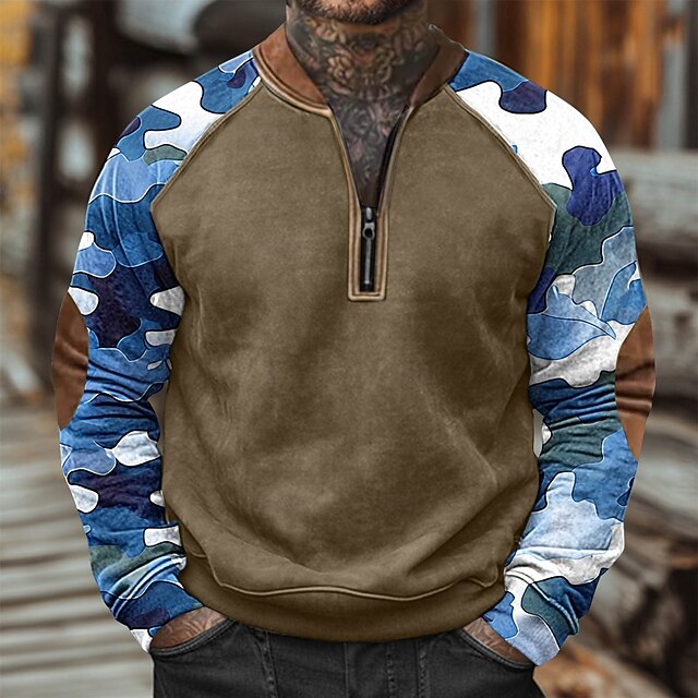 This Men's Sweatshirt Quarter Zip Sweatshirt Army Green Navy Blue Blue Purple Half Zip Color Block Camo / Camouflage Half Zip Print Casual Daily Holiday Polyester Vintage Streetwear Casual Fall Winter combines elegant design with practical functionality. Every detail has been carefully considered to ensure you get the premier possible experience. The first-class construction means this product will serve you well for years to come.