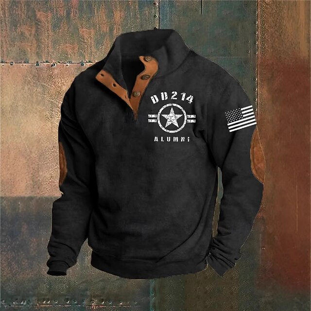 More information about Men's Sweatshirt Black Army Green Navy Blue Brown Dark Gray Standing Collar Graphic Print Patchwork Daily Holiday Going out Polyester Streetwear Casual Fall Winter Clothing Apparel Hoodies