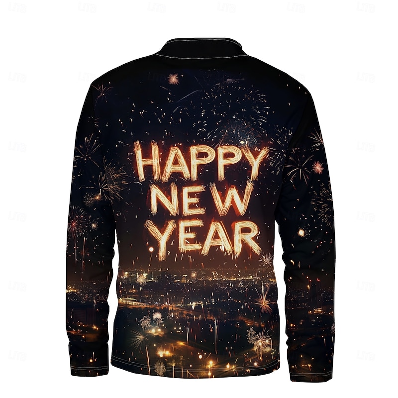 Highlights - Stay warm and chic this winter with our polyester long sleeve shirt for men - Perfect for celebrating the New Year in style - exceptional print design makes a statement - A must-have for the fashionable man's winter wardrobe