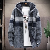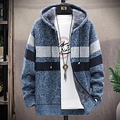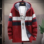 More information about Men's Sweater Cardigan Sweater Hoodie Zip Sweater Sweater Jacket Knit Knitted Color Block Hooded fashionable Outdoor Home Clothing Apparel Fall Winter Wine Navy Blue S M L