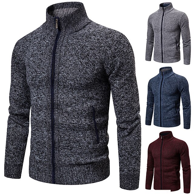 This Men's Cardigan Sweater Zip Sweater Ribbed Knit Regular Pocket Knitted Plain Stand Collar Warm Ups contemporary Contemporary Daily Wear Going out Clothing Apparel Winter Wine Red Black S M L combines elegant design with practical functionality. Every detail has been carefully considered to ensure you get the best possible experience. The superior construction means this product will serve you well for years to come.