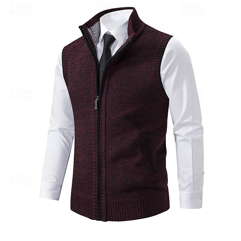 More information about Men's Dress Sweater Cardigan Sweater Zip Sweater Knit Sweater Ribbed Knit Regular Zip Up Side Pockets Solid Color Fashion traditional Daily Wear Date Clothing Apparel Fall & Winter Black Red M L XL