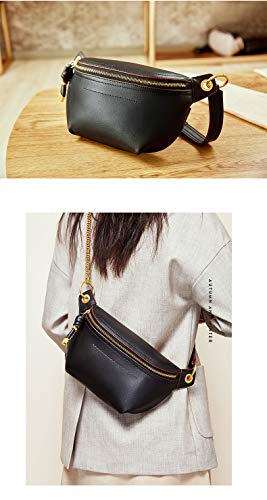 popular ! Women Chain Strap Cross-body Bags Genuine Leather Waist Bag with Zipper Closure for Daily (Black)
