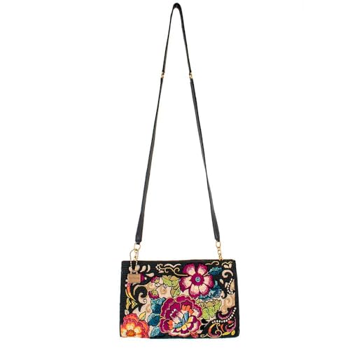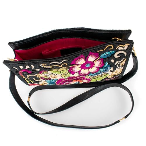 • Bold Floral Statement: The Last Tango handbag bursts with vibrant floral embroidery in rich hues, creating a dramatic contrast against a black backdrop for a look that’s elegant, romantic, and unforgettable.