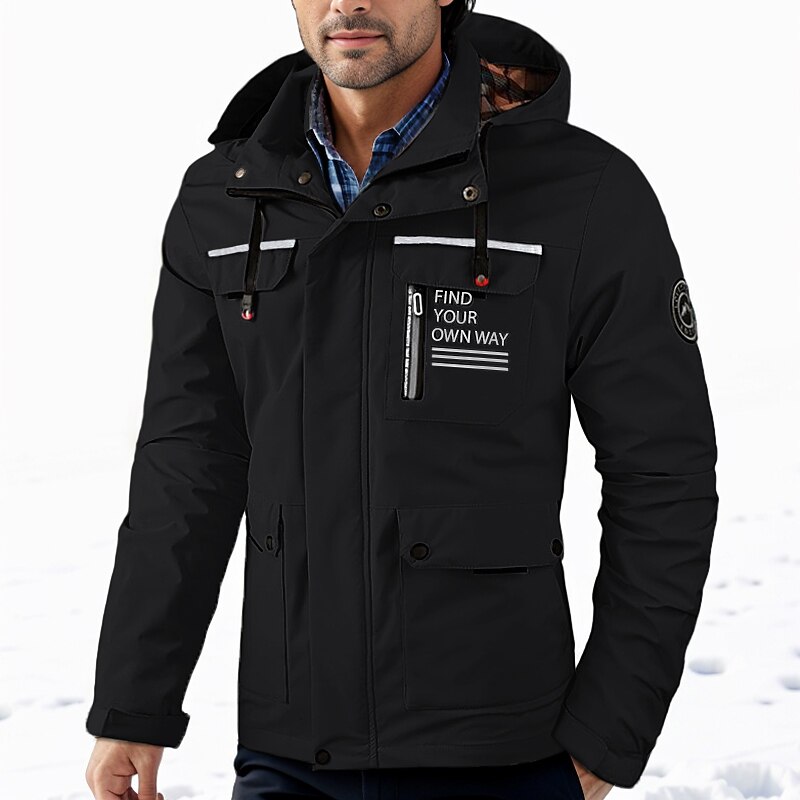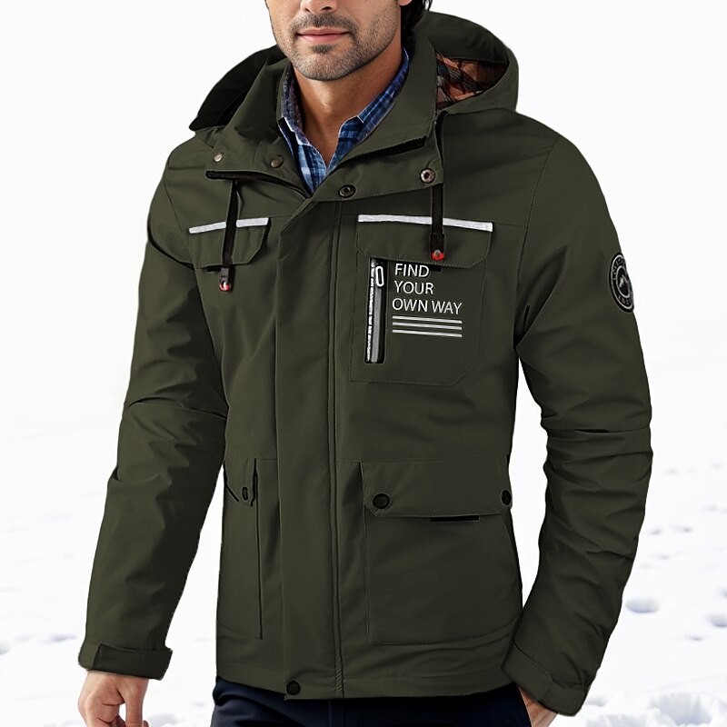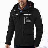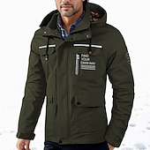 More information about Men's Winter Jacket Casual Jacket Outdoor Daily Wear Windproof snug Pocket Fall Winter Letter Fashion Streetwear Hooded Regular Black White Wine Army Green Jacket