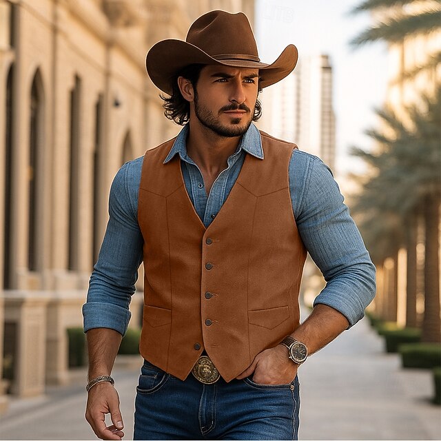 Why Choose Men's Faux Suede Vest Western Vest Waistcoat Vacation Business Casual Daily Vintage Cowboy Spring Fall Pocket Buttons Polyester snug Plain Single Breasted V Neck Lapel Slim Fit Black Brown?